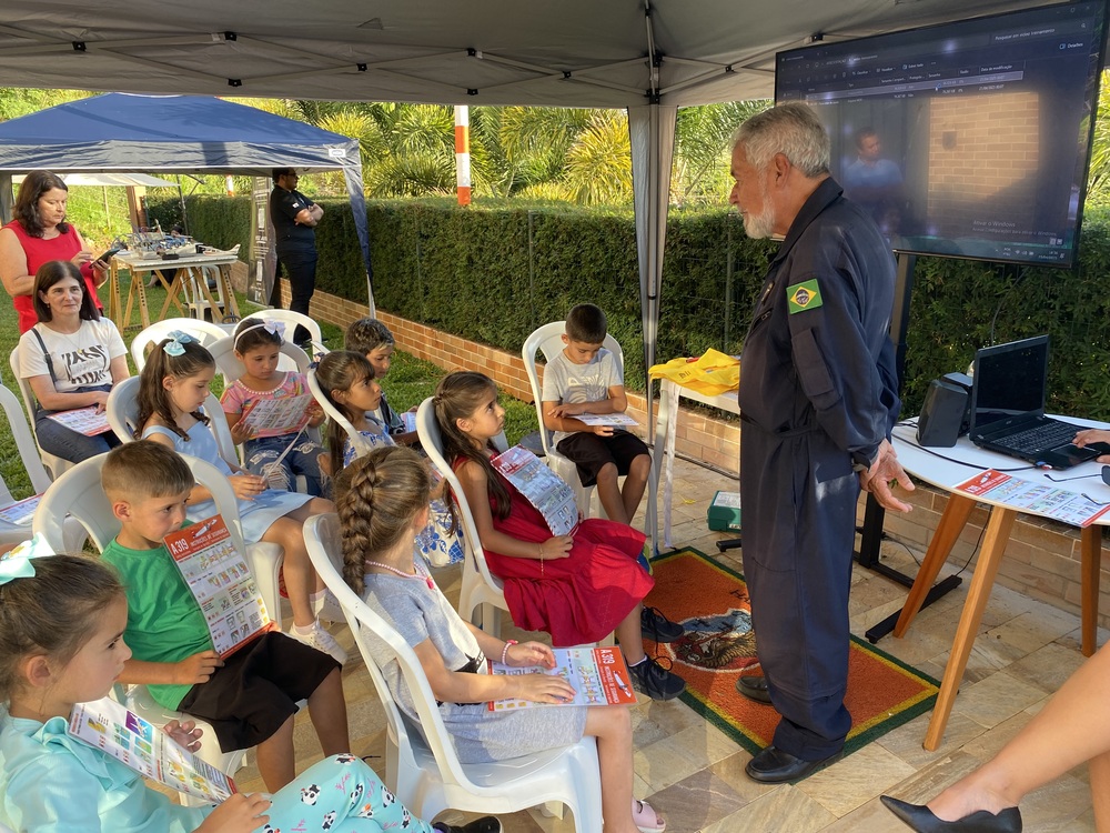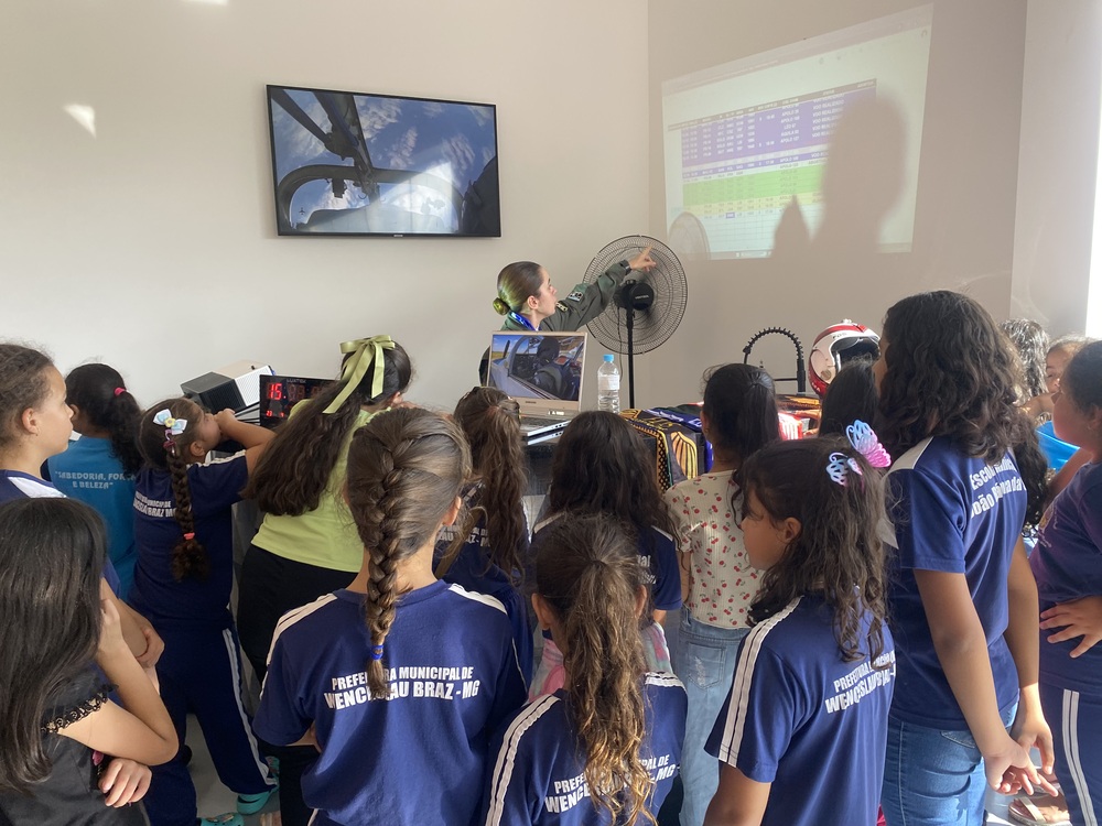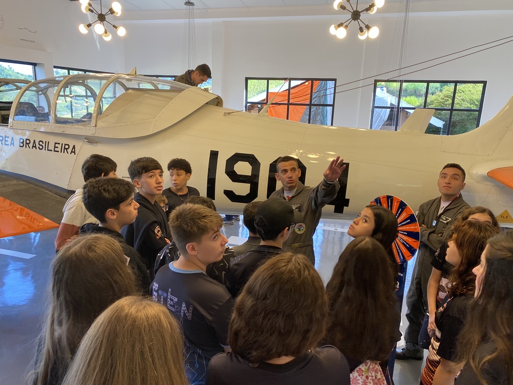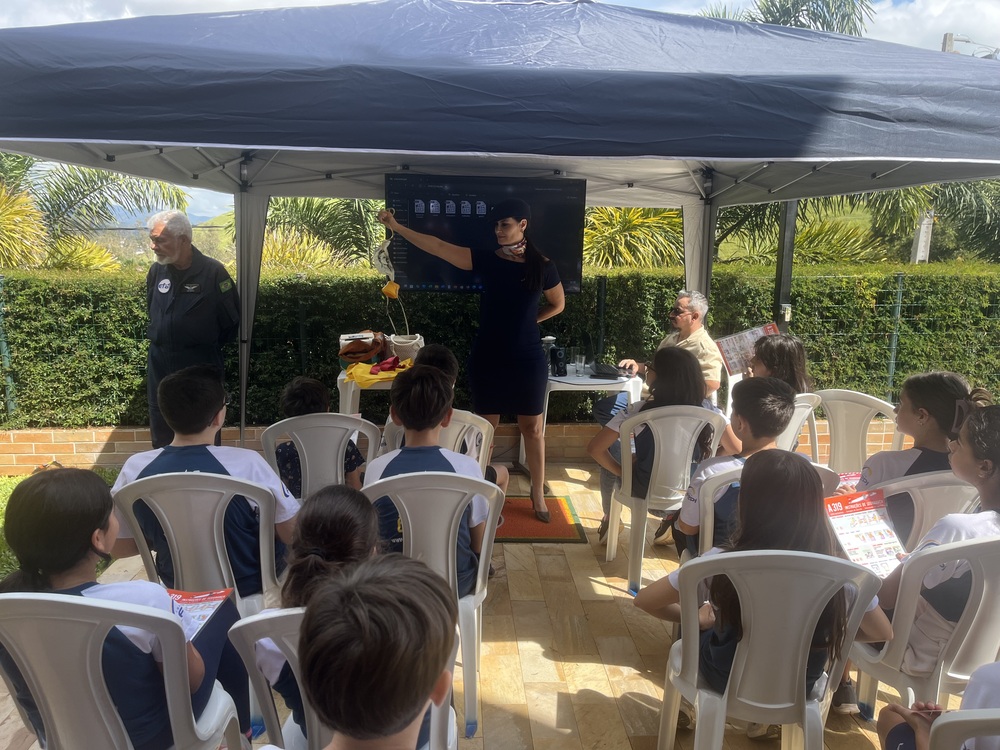 O Ten. Cel. Ref. Bosco, referência nacional nas asas rotativas e instrutor da Escola de Aviação Civil EFAI, com sede em Belo Horizonte - BH, apresentou as principais características da aviação de helicópteros. Uma dinâmica que expôs vídeos e demonstrou, por meio de maquetes, procedimentos de voo. As mais diversas perguntas feitas pelos estudantes surpreenderam positivamente o instrutor.
